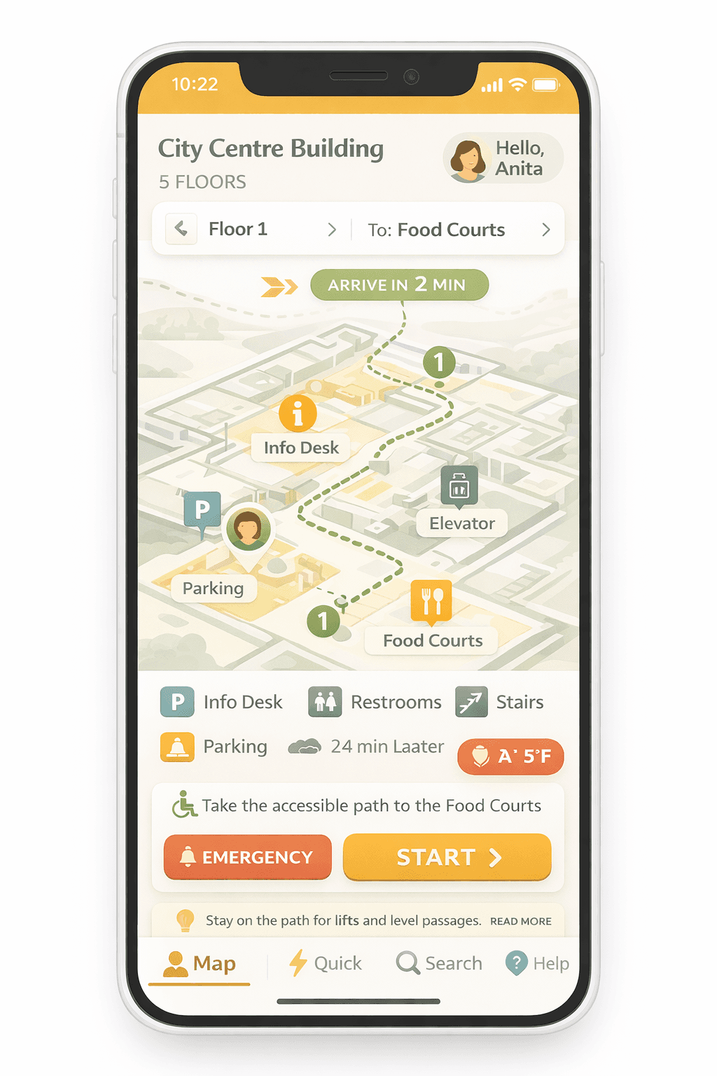 Early feedback shaped the idea further. Users wanted fewer steps to get started, constant reassurance, and visible help options. In response, I simplified flows, added landmark-based guidance, persistent “Need Help” buttons, and clear indicators for verified, working facilities like lifts and ramps.